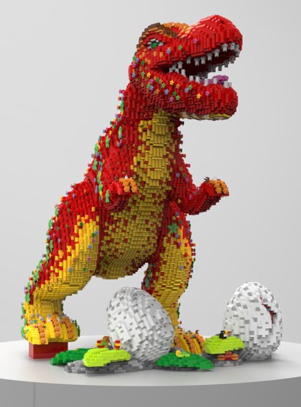 Positioned in The Masterpiece Gallery the three iconic dinosaurs are the stunning centrepieces of the room. Each model has a metal skeleton inside to support the LEGO bricks, the height of each models is 2,92 m (without podium) and the total piece count of the three models is more than 600.000 LEGO bricks. Now LEGO House has taken on the challenge to convert the three giant dinosaurs into a retail product.