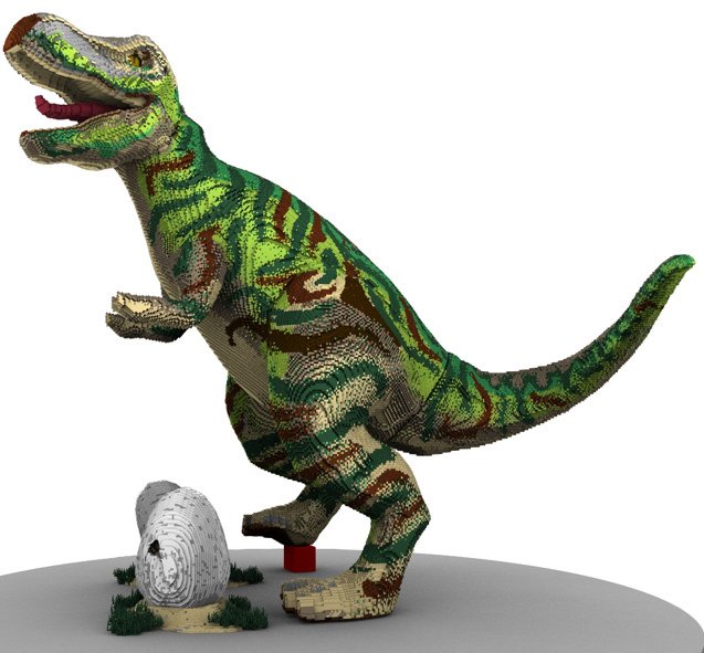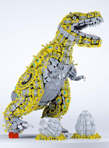Designer Nina Koopman says: ”One of the biggest challenges with the new model has been to capture all the details from the big models. Especially since the models in Masterpiece Gallery were all built of the three different building systems LEGO DUPLO, LEGO Technic and LEGO System. You see it especially with the yellow dino where we eg. have used gear wheels, and ventilator elements to get the “Technic feel” into the product.”