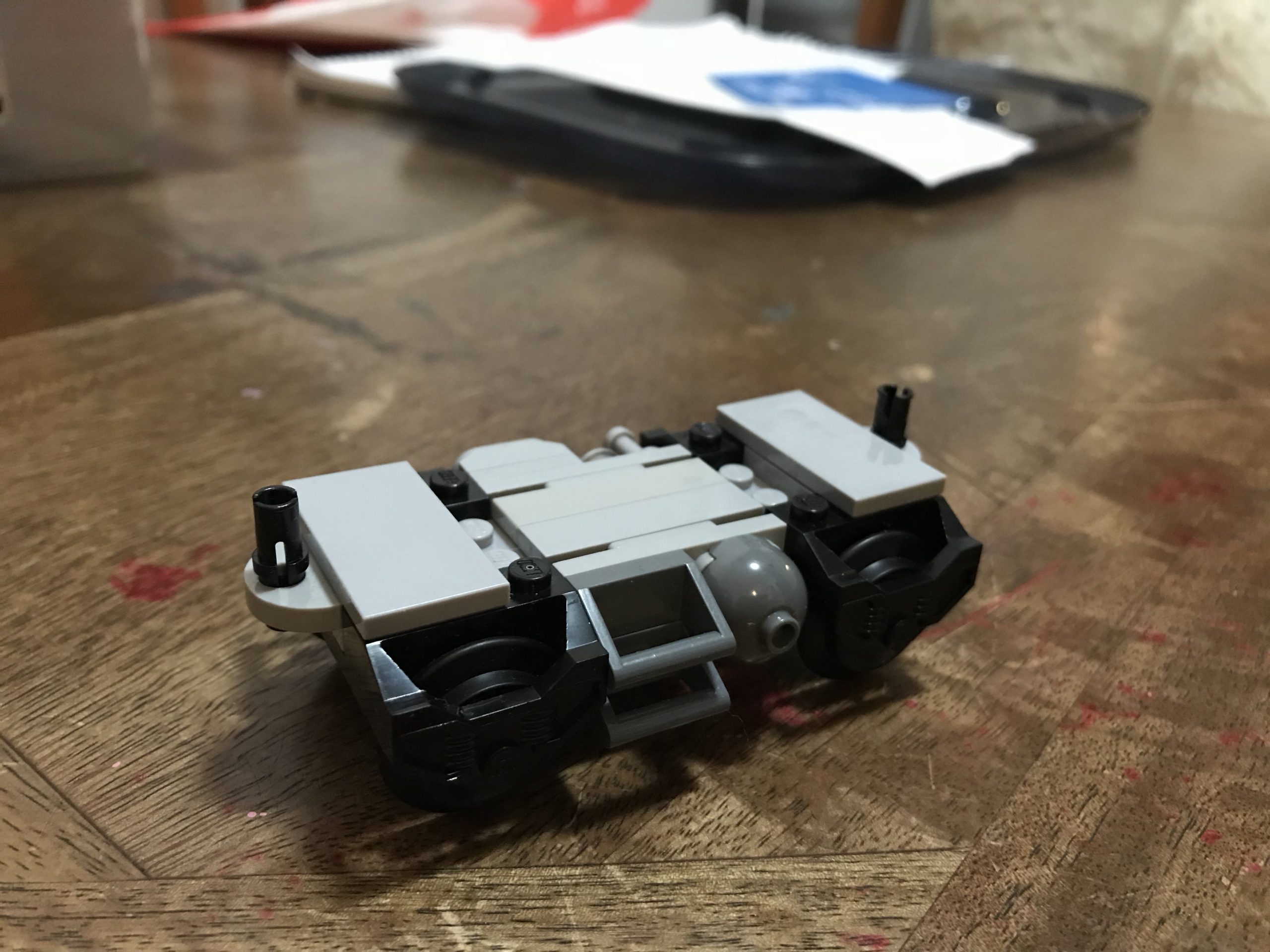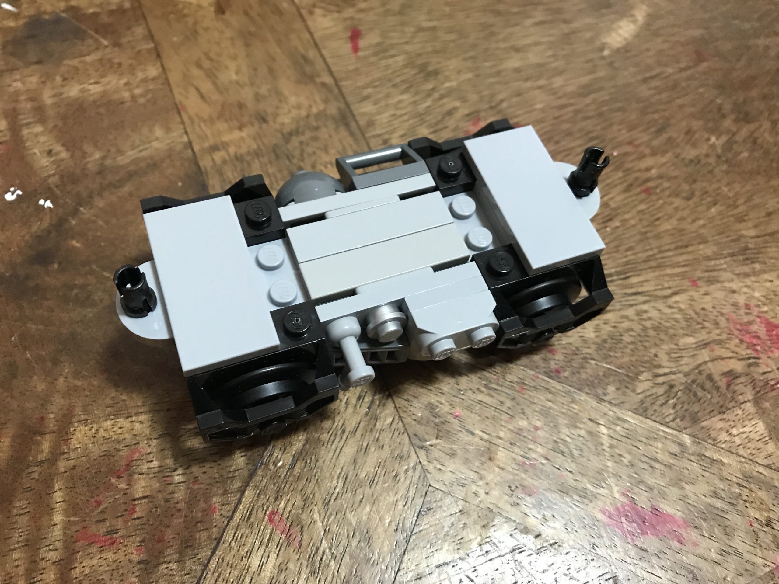For the eagle eyed amongst you will have noticed the actual modification to this train. It has Jacobs Bogies connecting the passenger cars. It’s a design I’ve always loved the look of riding on the French TGV and Eurostar trains, so I thought why not give it a try. The main changes were obviously dropping out the old bogies and replacing them. For the middle carriage, the underside filler has been extended a full 4 studs (might try for 6), and each of the end carriages will need an additional 2 stud extension.