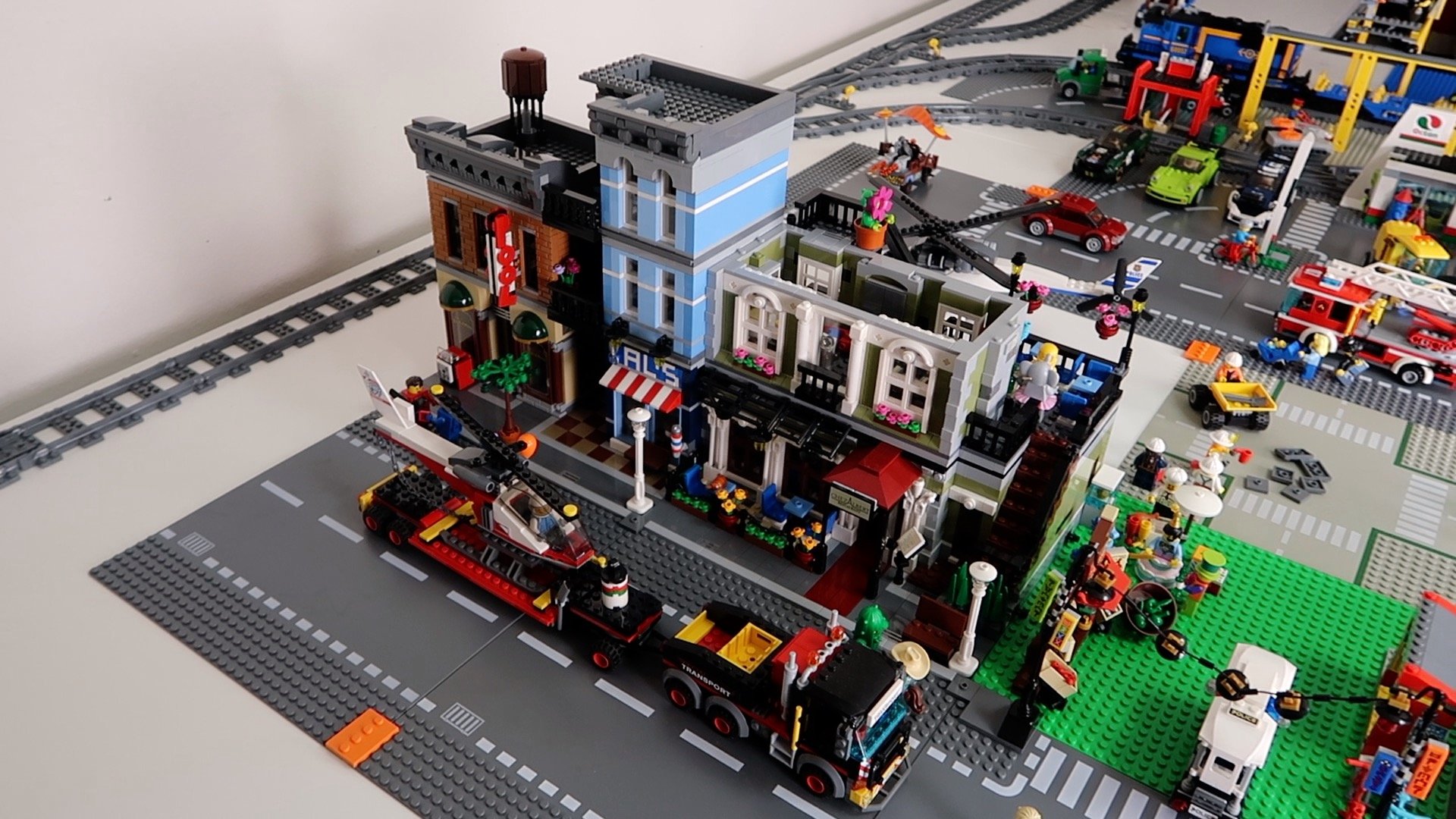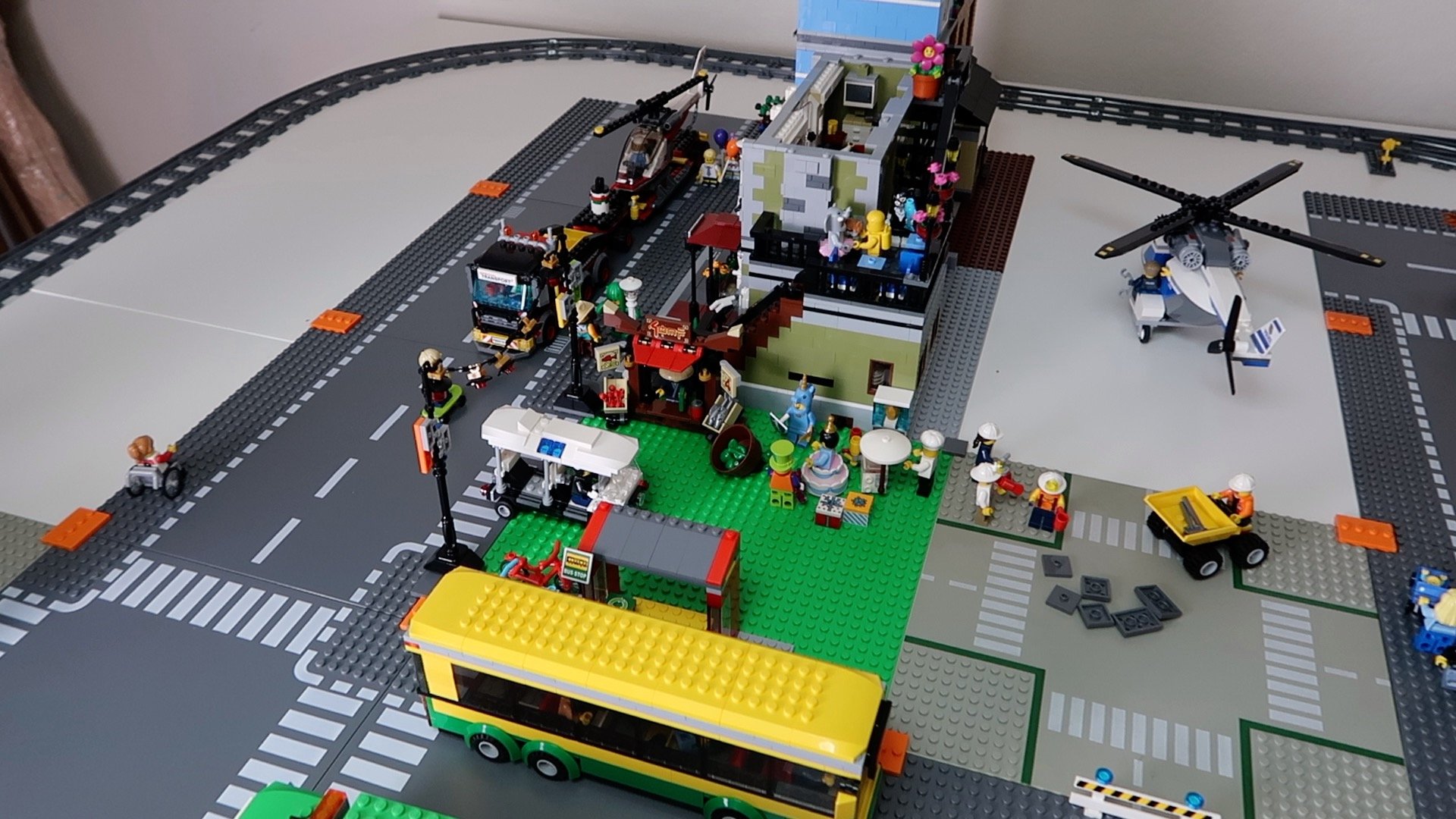 And don’t worry, my trains get lots of attention! Two-thirds of the train track is now double – and even triple – lines. This means I can run my LEGO City Passenger Train 60197 (which is undergoing a LEGO Moc upgrade, but you can see my Set 60197 Full Review) and Cargo Train 60052 without fear of them colliding (LEGO 60052 unboxing video).