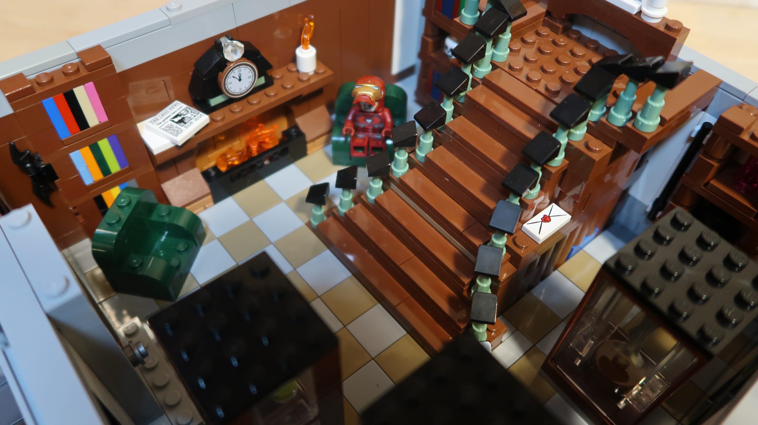 With this version, I wanted to take advantage of the space and improve each of the floors. The ground floor had always felt empty, so now it has some of the cabinets and display cases you can see in the movies. There’s also a fireplace that could be seen in the Spider-Man: No Way Home movie. Whilst I was at it, I made the grand staircase a little smaller to give me a bit more space.