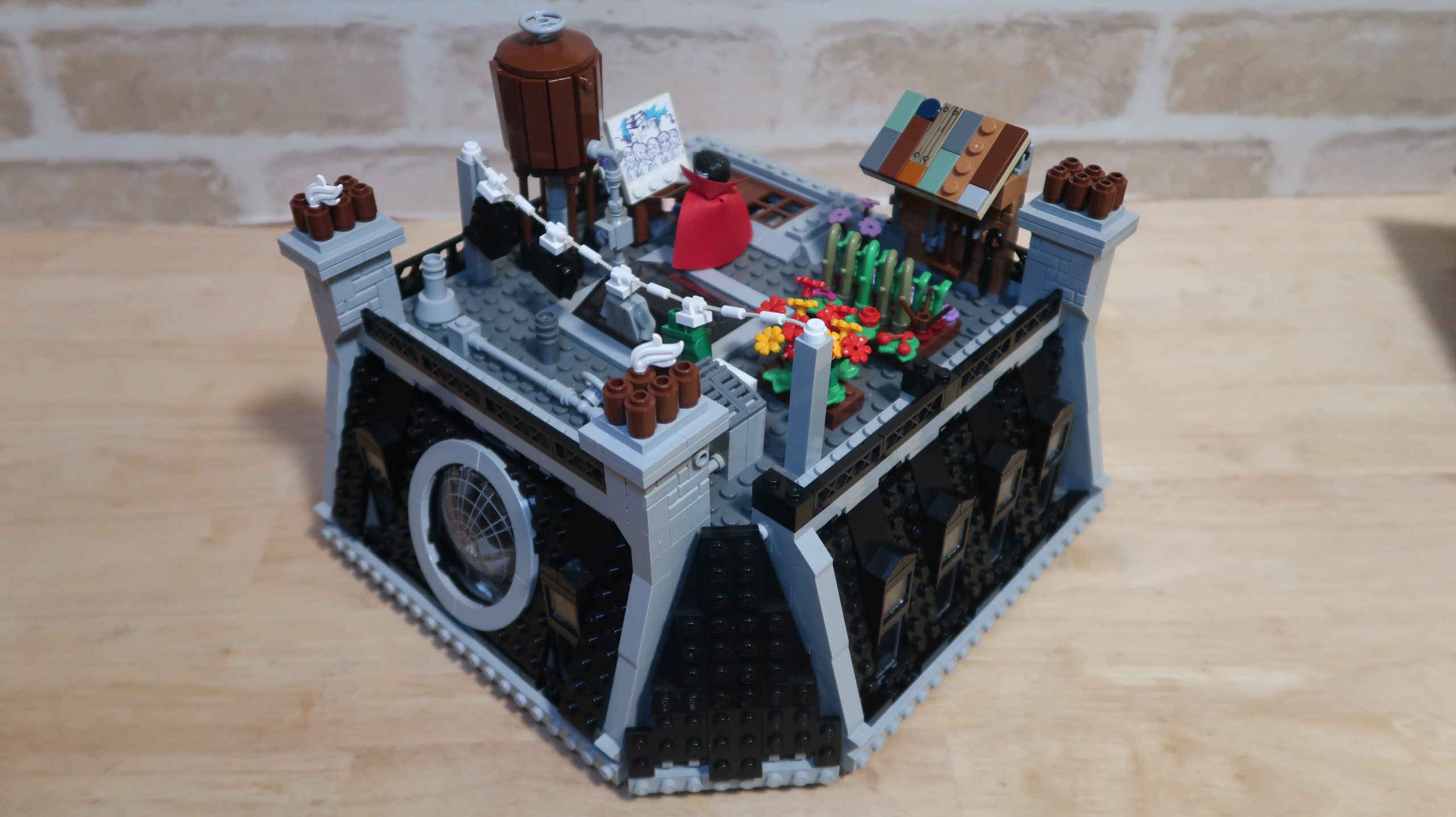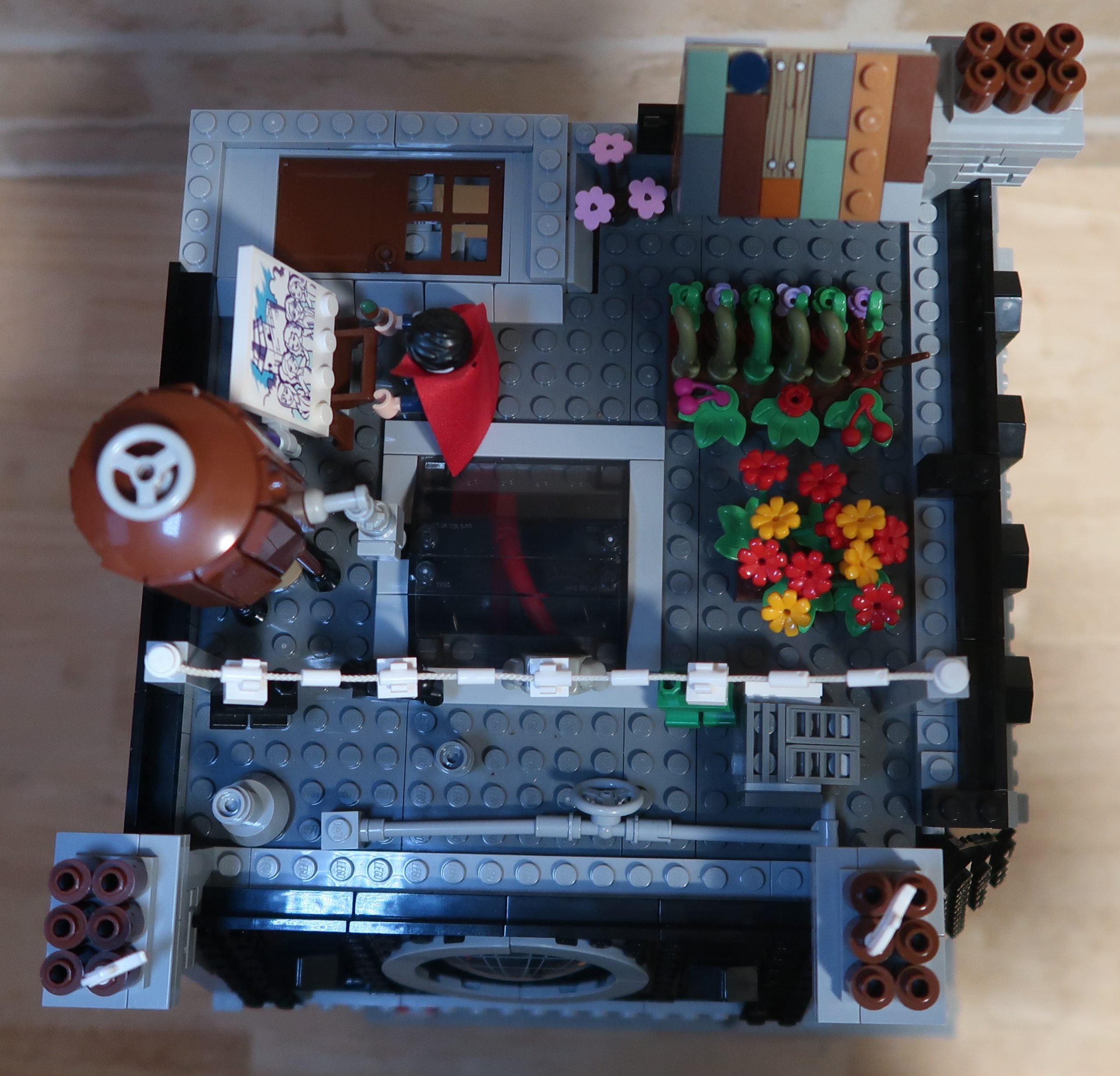 As for the roof. Well… I went to town on that too! In the Avengers Endgame movie, you get a great view of the roof and the garden on it. So now there’s a garden. But being New York, it also needed a water tower and why not throw in a washing line too? Doctor Strange likes it’s so much he’s up there painting his next masterpiece.