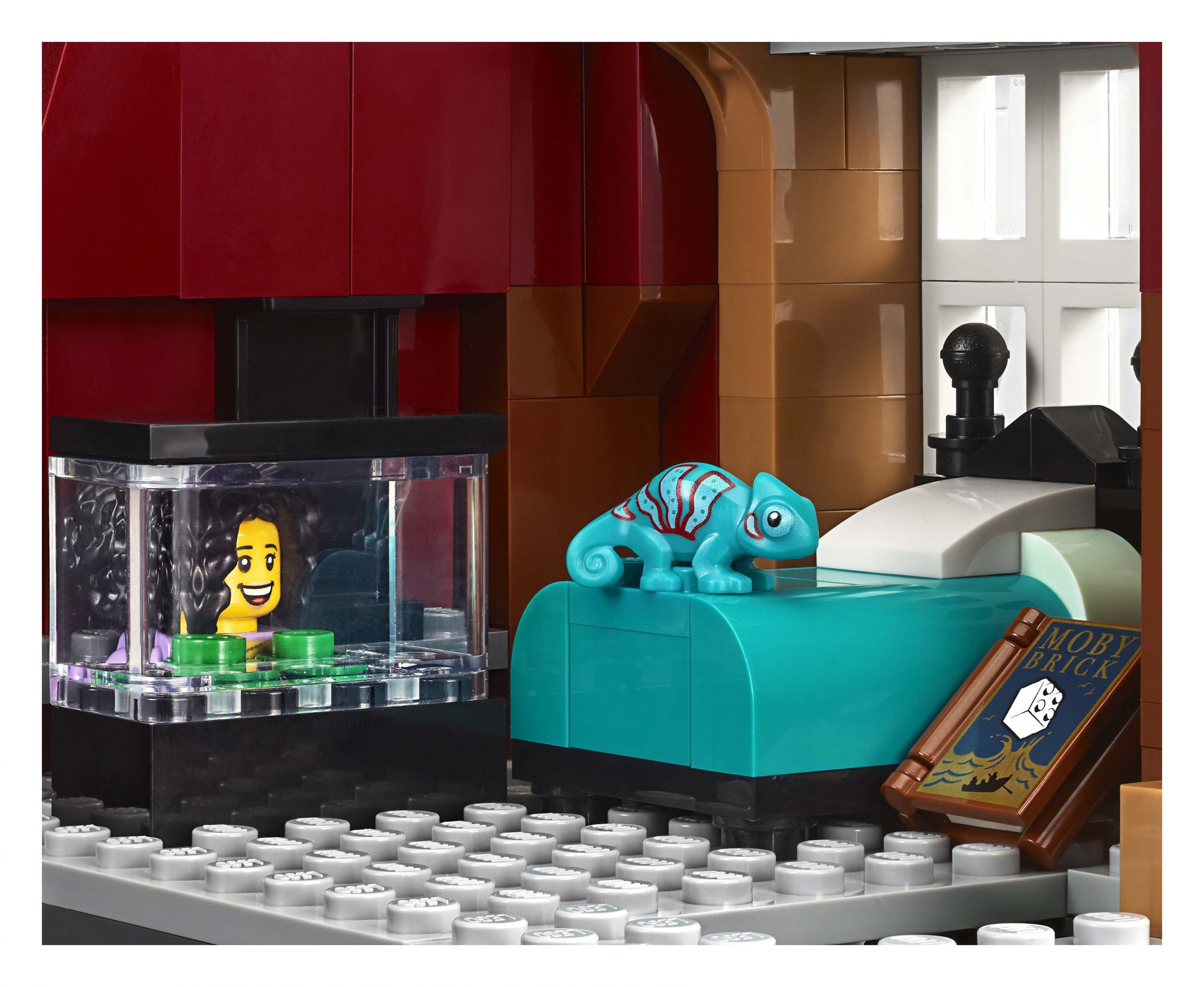• This big 3-story LEGO® set features so many details, including a display window, bookshelves, reading nook and living spaces in the town house. 5 minifigures also help to really bring this collectors’ toy to life.