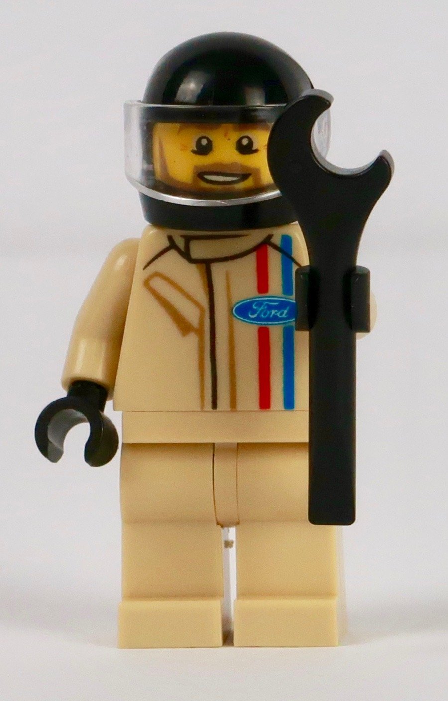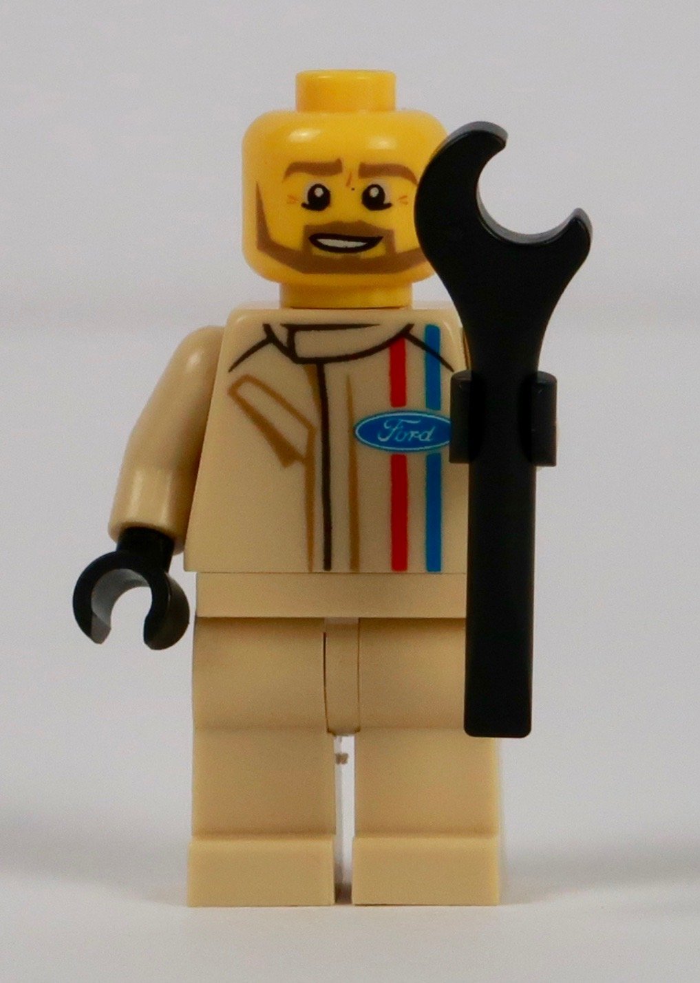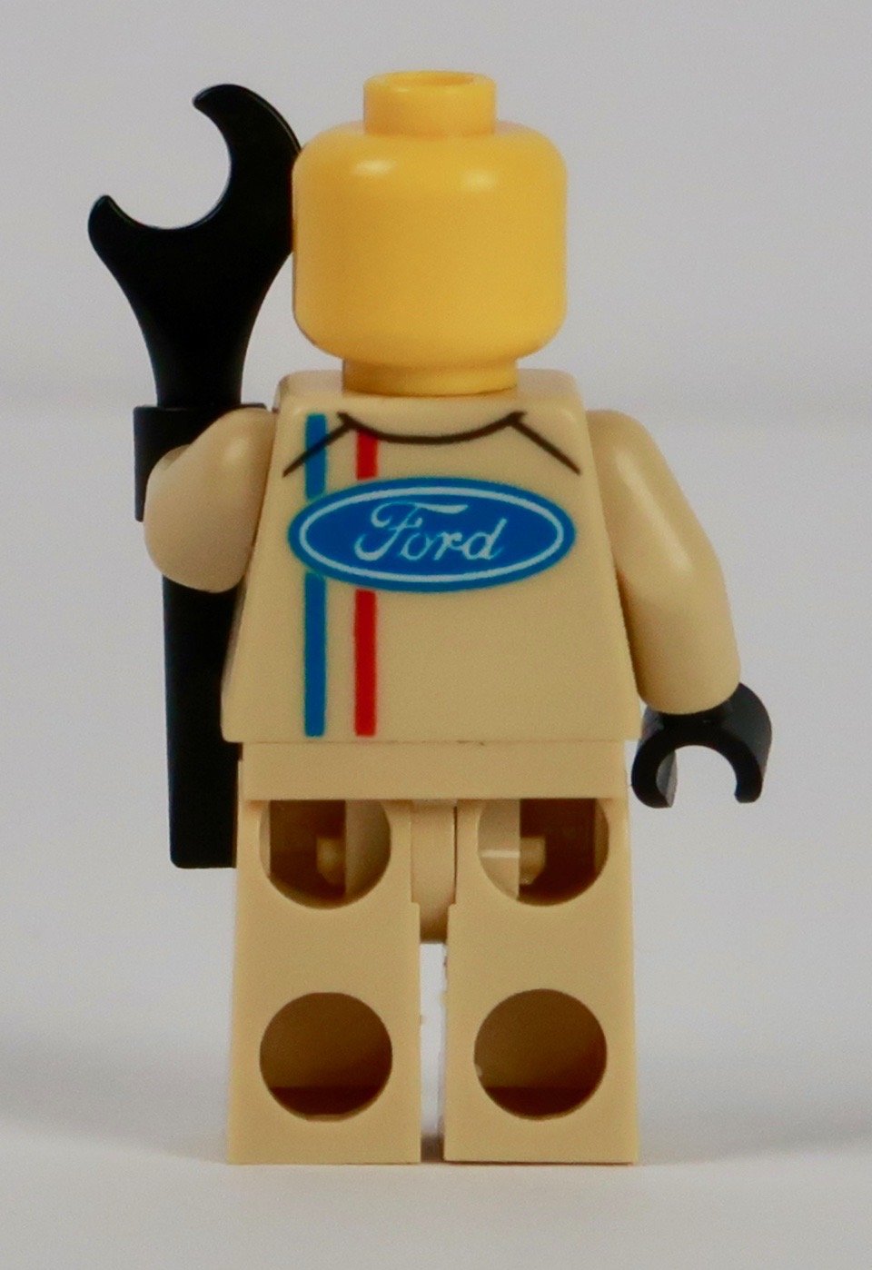 Of the cars I’ve made, I really like the figure in the one as he has quite a cheeky “Loving this” look. Could there be a hint of Steve McQueen in the Bullitt movie there perhaps? Seems like an obvious thing. And why wouldn’t you have that look anyway? Driving such a fabulous car? The outfit is a simple affair, with the blue and red lines and blue Ford Oval logo (I’m trying to find out what the red line is). And there’s some nice subtle detailing to give the outfit shape with the black and brown lines representing folds and pockets.