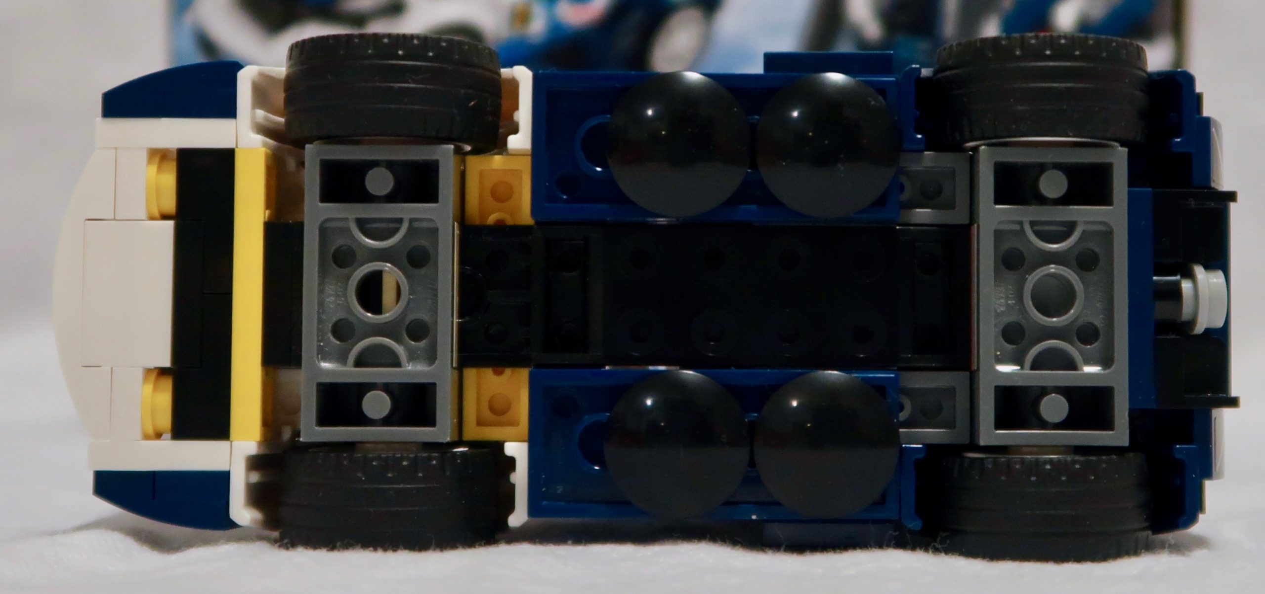 It’s interesting to see the random colour blocks they use in the hidden areas of the car. I’d guess – not being an expert on this yet – that’s it’s to make it clearer which parts to use, but also add more variety to the parts.